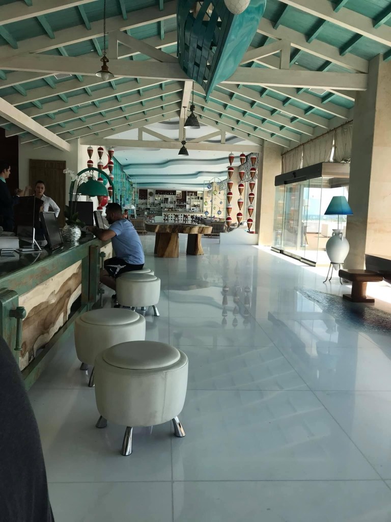 Ok, now for the best kept secret – late check out showers! Check out is at noon and you can use the resort until 6. In the lobby, across from the excursion desk, is an unremarkable door labeled with a shower head picture. There are 2 COMPLETE and separate bathrooms behind this door for guests to use! I included a picture because I was so impressed. We checked out in the morning so we wouldn’t have to pay the $10 per hour late check out fee, gave the concierge our bags to hold, and went to swim in the pool. We drank, swam, and ate lunch. About 30 minutes before our transport arrived, we went to the lobby showers so we wouldn’t have sunscreen or salt water on our skin for the long flight! Brilliant example of great customer service.