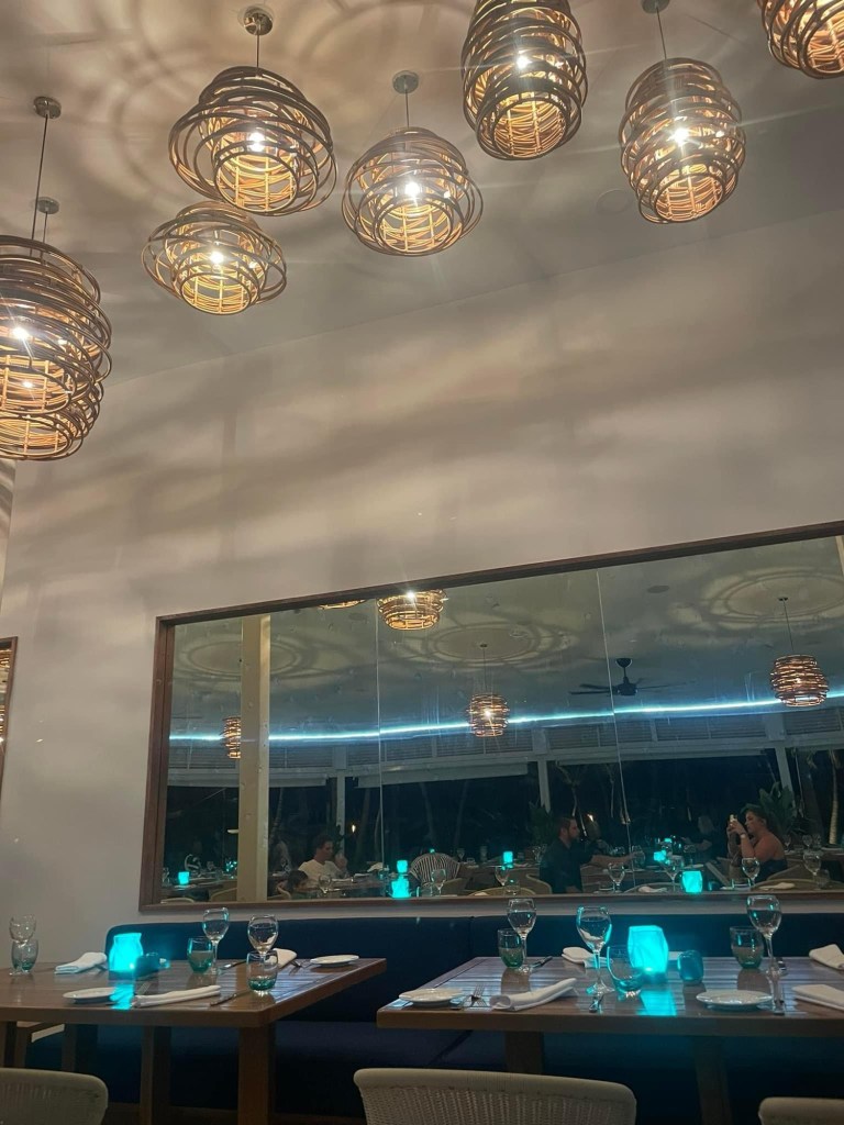 Food – Pool food was really good. Loved the coconut shrimp. We also liked the fried chicken sandwich at the pool and the focaccia sandwich. Food at salt was inconsistent with some items delicious and some inedible. The focaccia with the garlicky hummus dip as bread service was so yummy. The portions at Fire & Ice were a joke. A 2” piece of meat posing as a filet. Speaking of, every restaurant at Blue Haven and Alexandra had horrible steak. “Taco Salad” at salt was tortilla chips with sour cream and a few squares of chicken and maybe an TBS or black beans. Just pass on the steak. We had AMAZING jerk chicken from the stand behind the beach bar at Alexandra. Highly recommend. We just felt the food was way below expectations and hard to come by with limited hours/options. Fish Deck had the most magnificent sunset views. Food was still below expectations but would go again for the view.