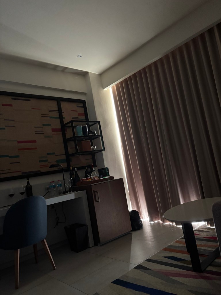 1) If you are sensitive to light when you sleep (I am), you might consider bringing some kind of tape or extra curtain. The curtains were black out but they don’t connect to the wall so it definitely lets blinding light into the room. We pushed our luggage against the curtains before we went to bed to try and keep the light out.