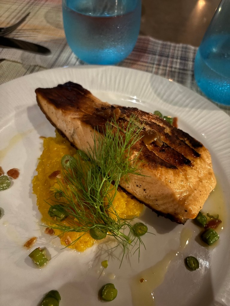Navigator – Seafood focused at Ziva -salmon excellent, calamari just ok – fine but the least impressive dinner of our trip