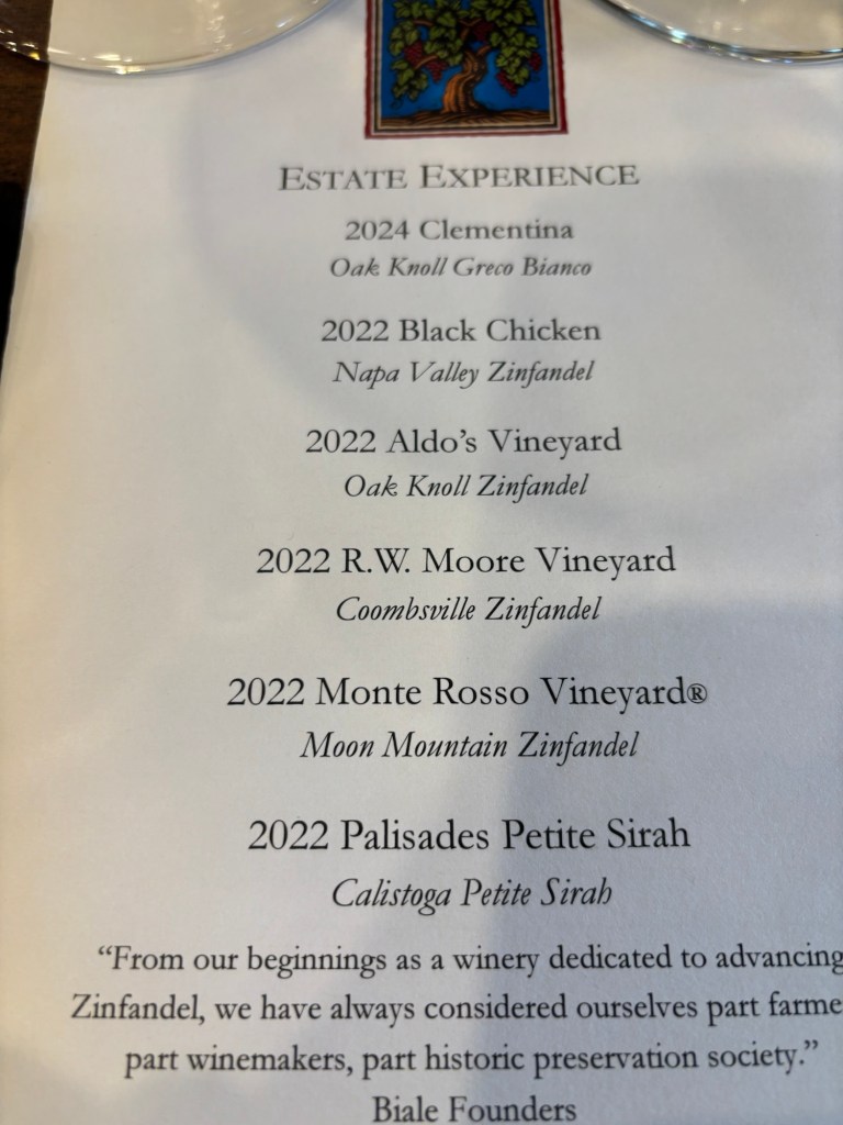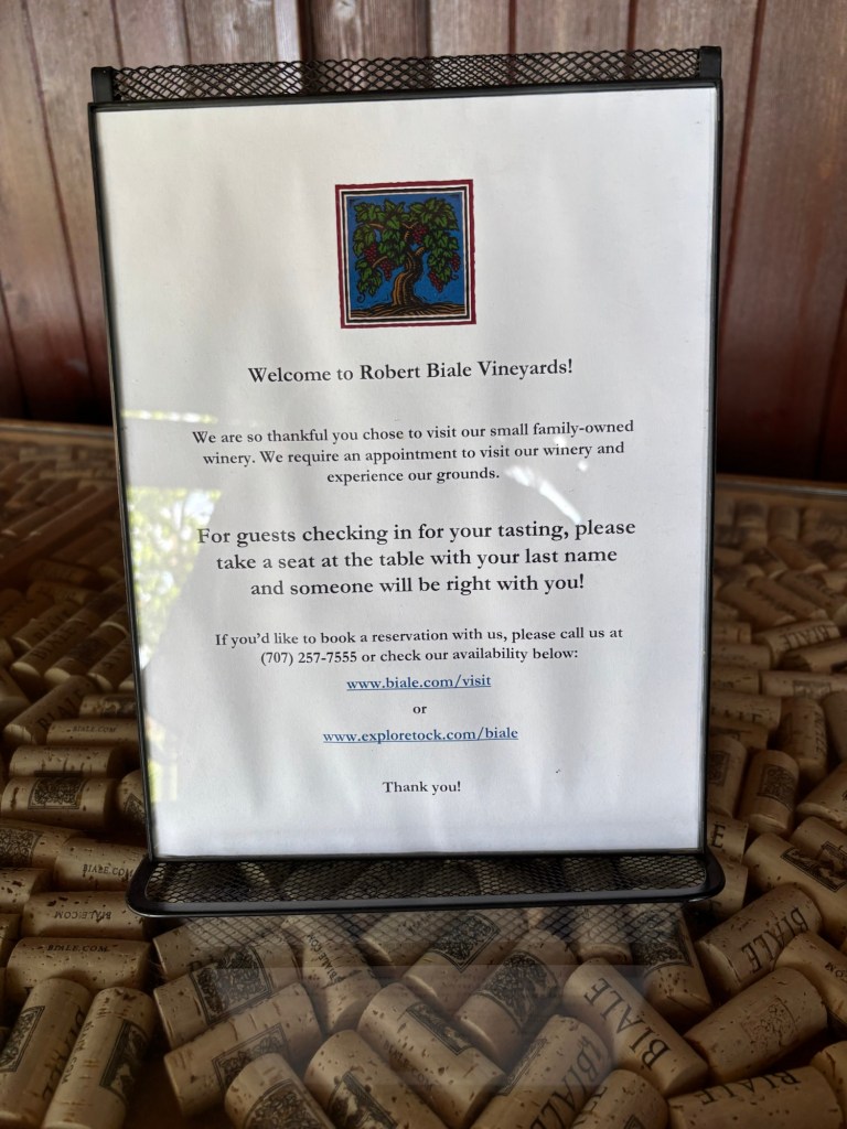 10am – Robert Biale Vineyards – known for their zinfandels and petite sirah