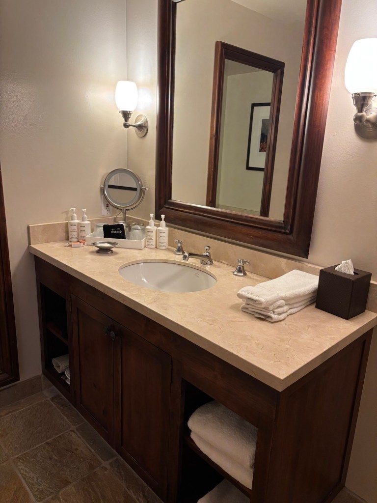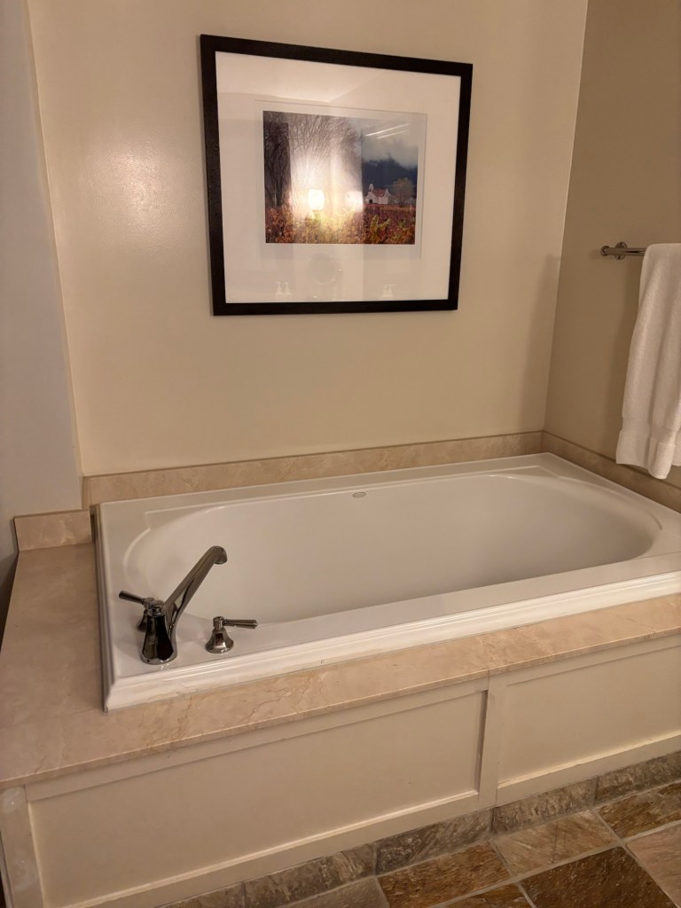 The German-style buildings are cute. The rooms have a gas fireplace and are large but not fancy. This is not a luxury hotel but the bathrooms are huge and I obsessed over the stone shower that was immaculately clean with great water pressure.