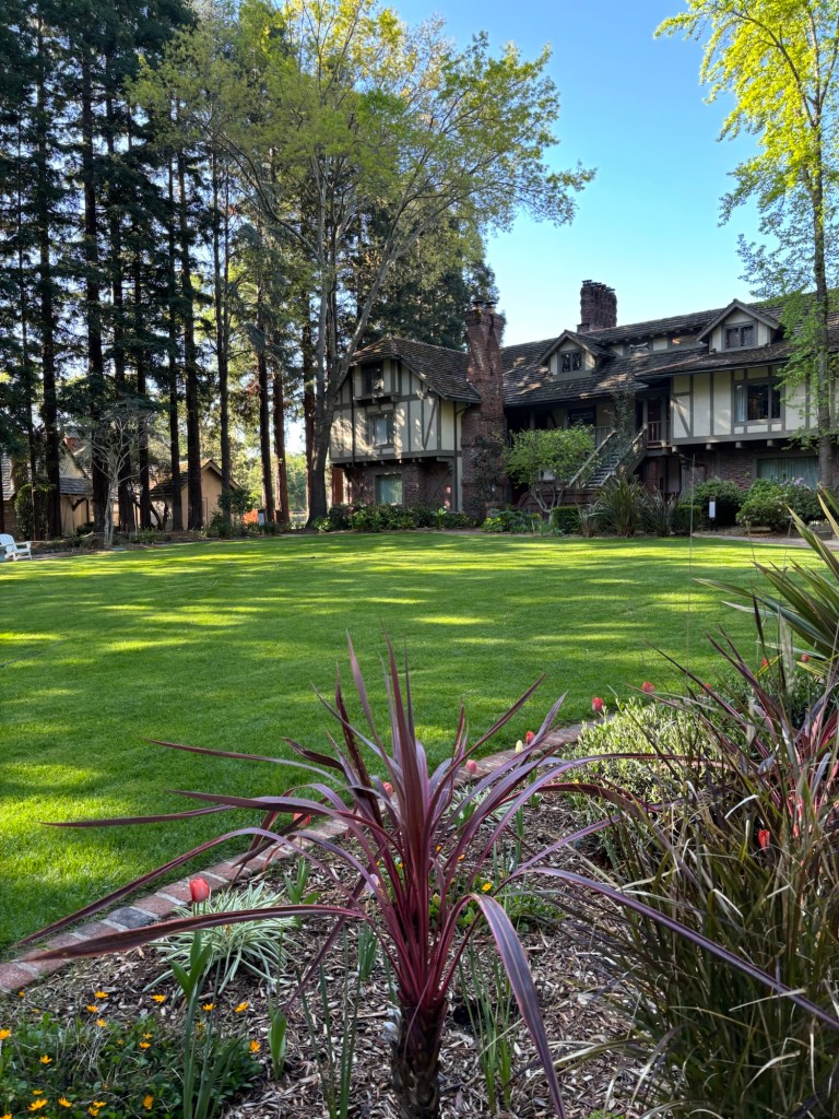 Tucked away on St Helena Hwy in St Helena, CA is the Harvest Inn. In a land of rolling hills of vineyards, it feels magically to pull into a little forest that is this hotel.