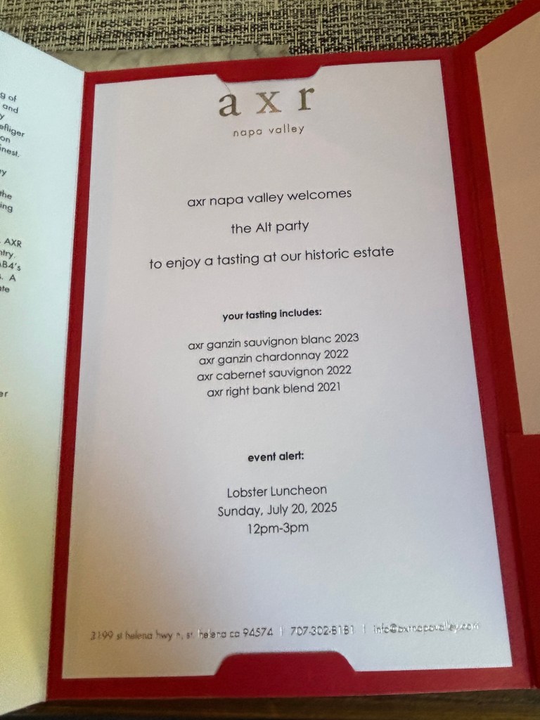 AXR is a boutique winery just north of St. Helena, CA. I chose this winery because it looked like they have grapes we enjoy and they have redwood trees on property. Again, this was a pricey tour at $90 per person but it was a private tour and tasting.